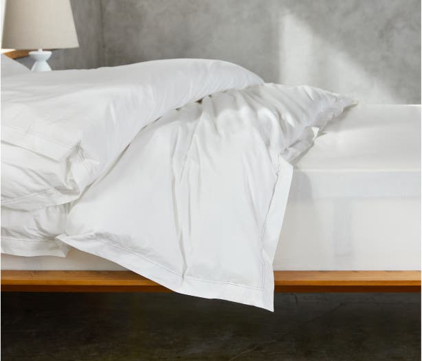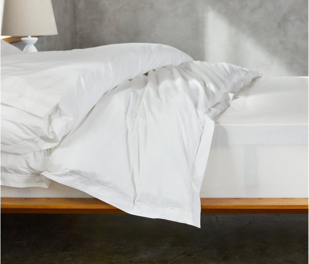 Crisp, cool percale cotton with a clean flange border. A breathable weave that gets better with every wash.